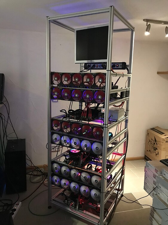Also wagten wir den Schritt. Ohne jegliches Vorwissen bestellten wir die Hardware und begannen, in unserem Keller unser erstes Mining-Rig zusammenzubauen. Es war eine Mischung aus Begeisterung und Frust: Kabelsalat, Hitzeprobleme, Konfigurationen, die einfach nicht funktionieren wollten. Doch nach unzähligen Stunden, Tutorials und Tests war es endlich soweit: Unser Rig lief!